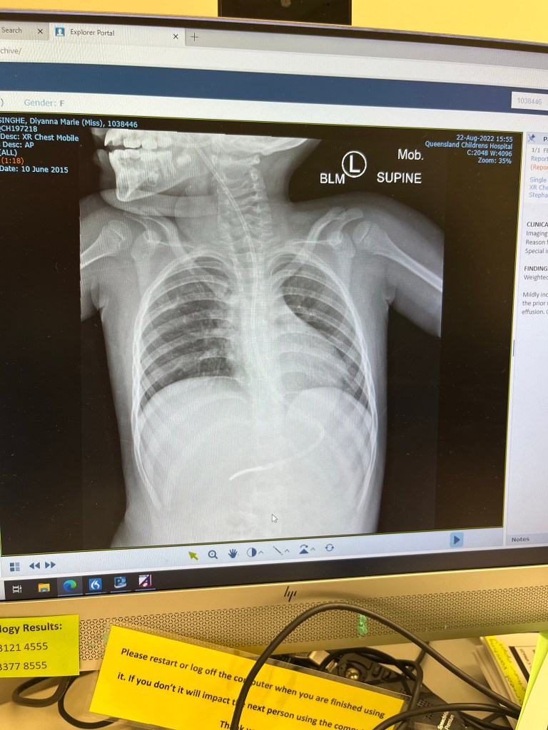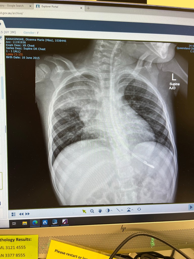 In the lead up to meet Dr Kilner in August another x-ray was taken. And we received the new we had been waiting for. The inflammation in Diyanna’s lung had subsided to the point where there was no trace of it on the x ray. Until another bronchoscopy is carried out the extent of the internal damage is not known but we can be hopeful that the outlook is not as bad as what it was a year ago.